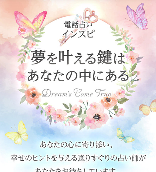 スマートフォン鑑定に特化した電話占い「インスピ」。サイトの利用のしやすさに定評があり、最近では占いフェアにも参加したりと注目度も高い。夜間利用でポイント還元、毎日サービスコインをもらえるチャンスがあったりと、ユーザー目線に立ったキャンペーンも高評価!
