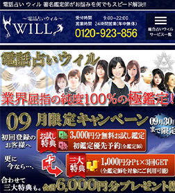 2013年に設立、今では在籍する鑑定師が190名、都内に対面式の占いサロンを3店舗もオープンさせたりと、話題に事欠かない電話占いウィル。
